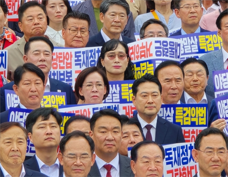 12일 오후 국민의힘 의원과 당원들이 여의도 국회의사당 본관 계단에서 "야당탄압 및 독재규탄"대회를 열기에 앞서 순국선열에 대한 묵념을 하고 있다. 국민의힘 의원들과 지지자들은 국회에서 1차규탄대회를 마치고 곧바로 용산으로 이동 이재명독재종식을 위한 2차 대회를 가졌다. 국민의힘은 이날 약 5천명의 지지자들이 의원들과 함께하며 뜻을 모아 주었다고 밝혔다. 2 0 방송언론소비자주권연대 방송언론소비자주권연대 core7949@gmail.com 방송언론소비자주권연대의 기사 더보기 저작권자 ⓒ 방송언론소비자주권연대, 무단 전재 및 재배포 금지
