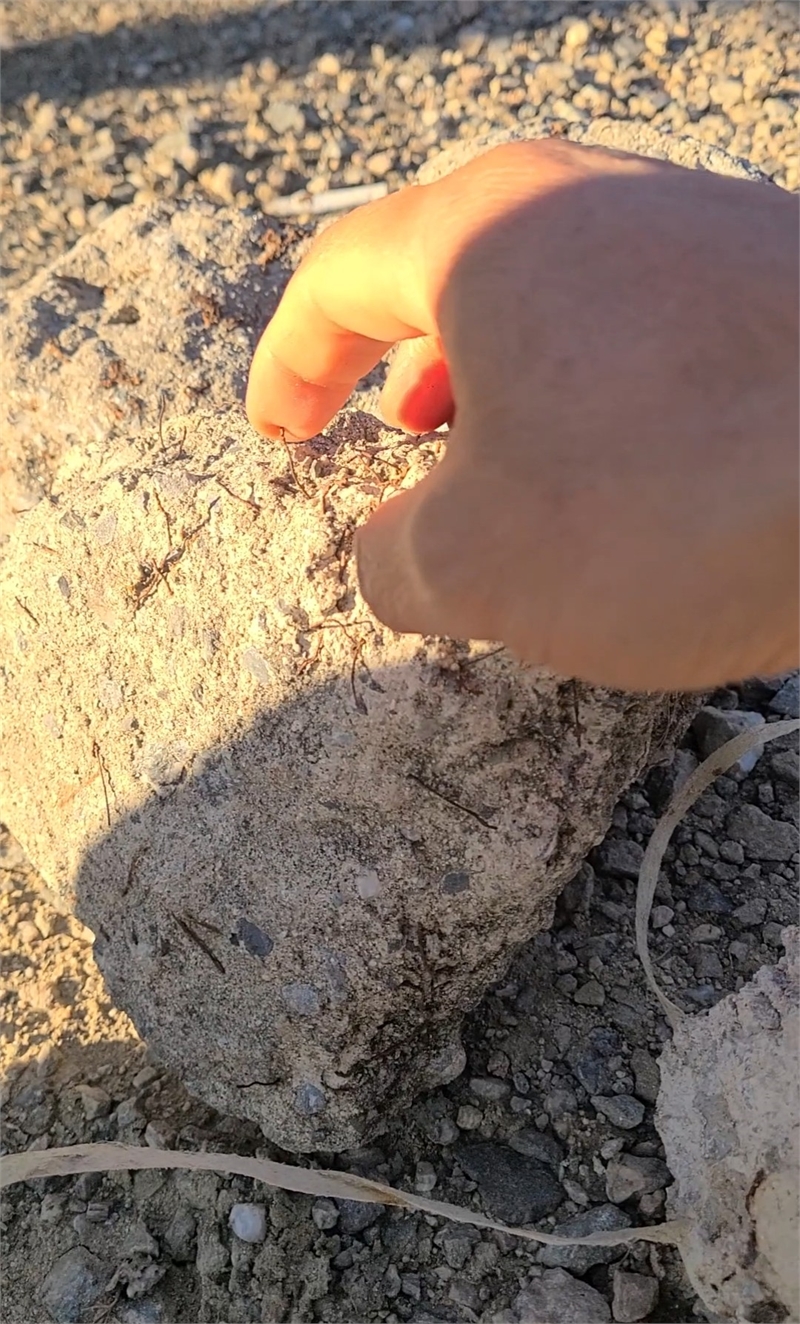 현장에서 발견된 숏크리트 덩어리에 철선이 보인다